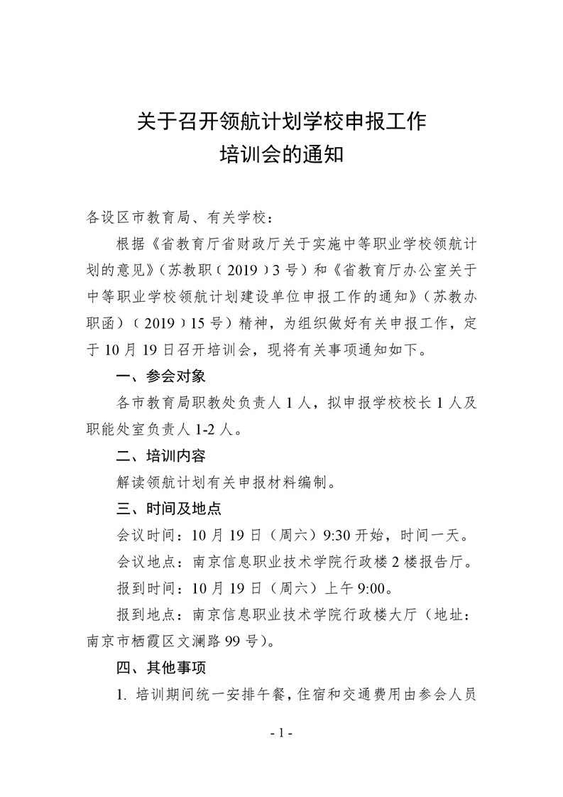 关于召开领航计划学校申报工作培训会的通知(1)