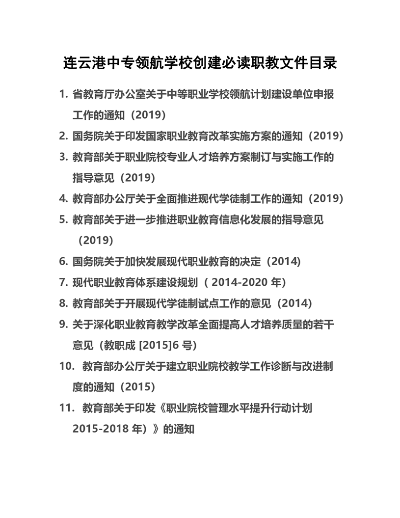 连云港中专领航学校创建必读职教文件目录