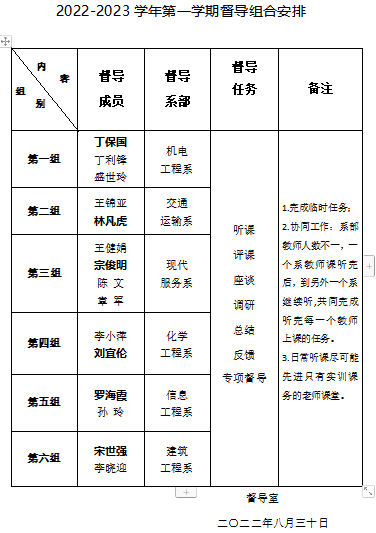 2022-2023学年第二学期督导室督导组合安排表
