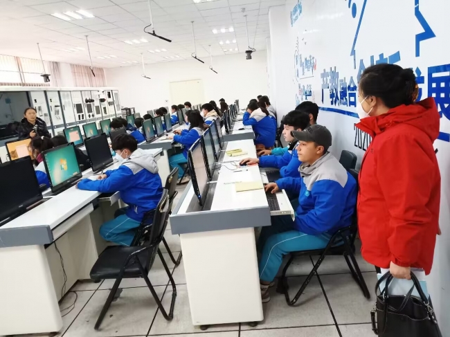 督学到海尔物联网学院了解学生上课情况。分别到承办省焊接大赛和建筑装饰技能大赛的赛场实地查看赛场布置、材料准备,并与参赛师生深入交流。