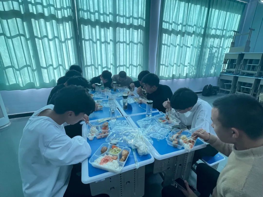 助力疫情防控,化工志愿者在行动。化学工程系志愿者达到目的地后,放下行李,投入到送餐任务中。每天早、中、晚三餐,共有12栋楼需要配餐,送餐。每栋楼5位志愿者为一组,每栋楼共有6层,每层楼需要配送5到7个餐箱,任务相当艰巨。任务明确后,化工志愿者开始行动起来,陆续在高楼层上下往返,由于身穿防护服,往往上下楼两个来回,浑身都会被汗水浸湿。早上配餐在2到3小时才能配送完毕,在10点半左右完成早餐配送。早餐配送结束后,集体前往核酸地点进行核酸,同学们在前往核酸的路上,双腿因持续高强度工作而发抖。核酸结束后,休息一小时左右,开始配送午餐;午餐配有水果,酸奶,汤等物品,加大了配餐难度。12点左右开始配餐,在下午2、3点完成配餐任务,短时间高强度的工作,学生已经筋疲力尽,回到教室住处,倒头就睡,疲惫之态,尽显脸上。下午休息到6点,开始配送晚餐,在8、9点陆续完成晚餐配送。