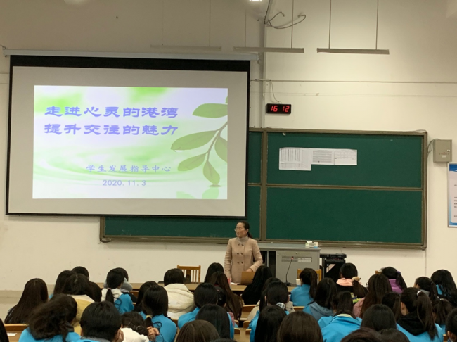 为了使2020级同学们能够更快、更好的适应新的学习生活环境,11月3日下午四点在2-101阶梯教室,现代服务系开展了主题为“走进心灵的港湾,提高交往的魅力”的心理健康讲座。