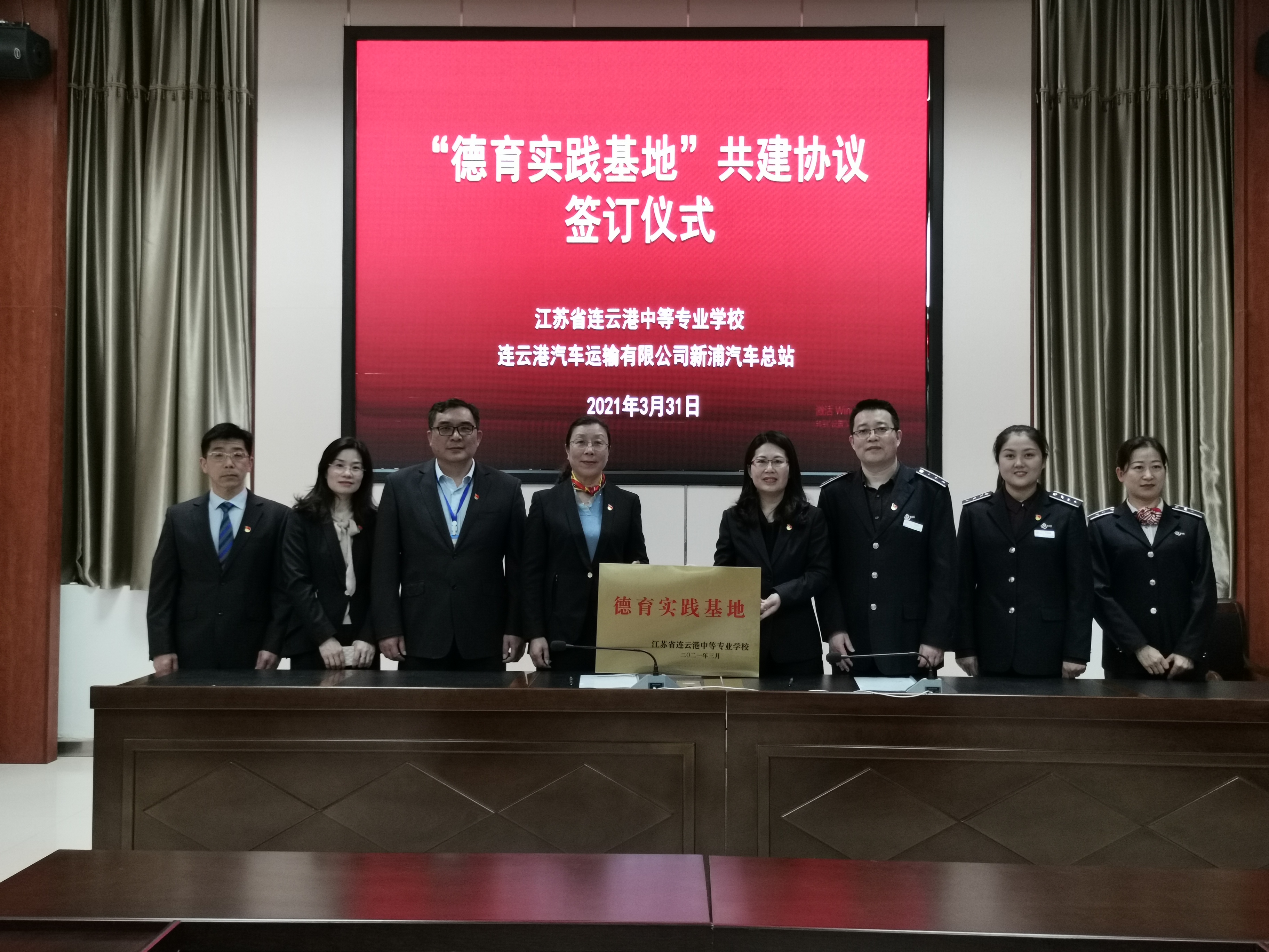 学校副校长丁阳、学生工作处处长殷勇、系主任徐海丽、系党支部书记刘良保出席校站 “德育实践基地”共建协议签订仪式。活动中,新浦汽车总站站长、书记王平对市汽车总站“雷锋车”的发展及58年来六代雷锋车手的突出事迹做了简要介绍,几十年的坚守,一代又一代的雷锋车手在平凡的岗位上用朴素和友善传递感动。丁校长提出希望能以基地为载体,开展好学生道德教育实践活动,为学生的健康成长奠定基础。