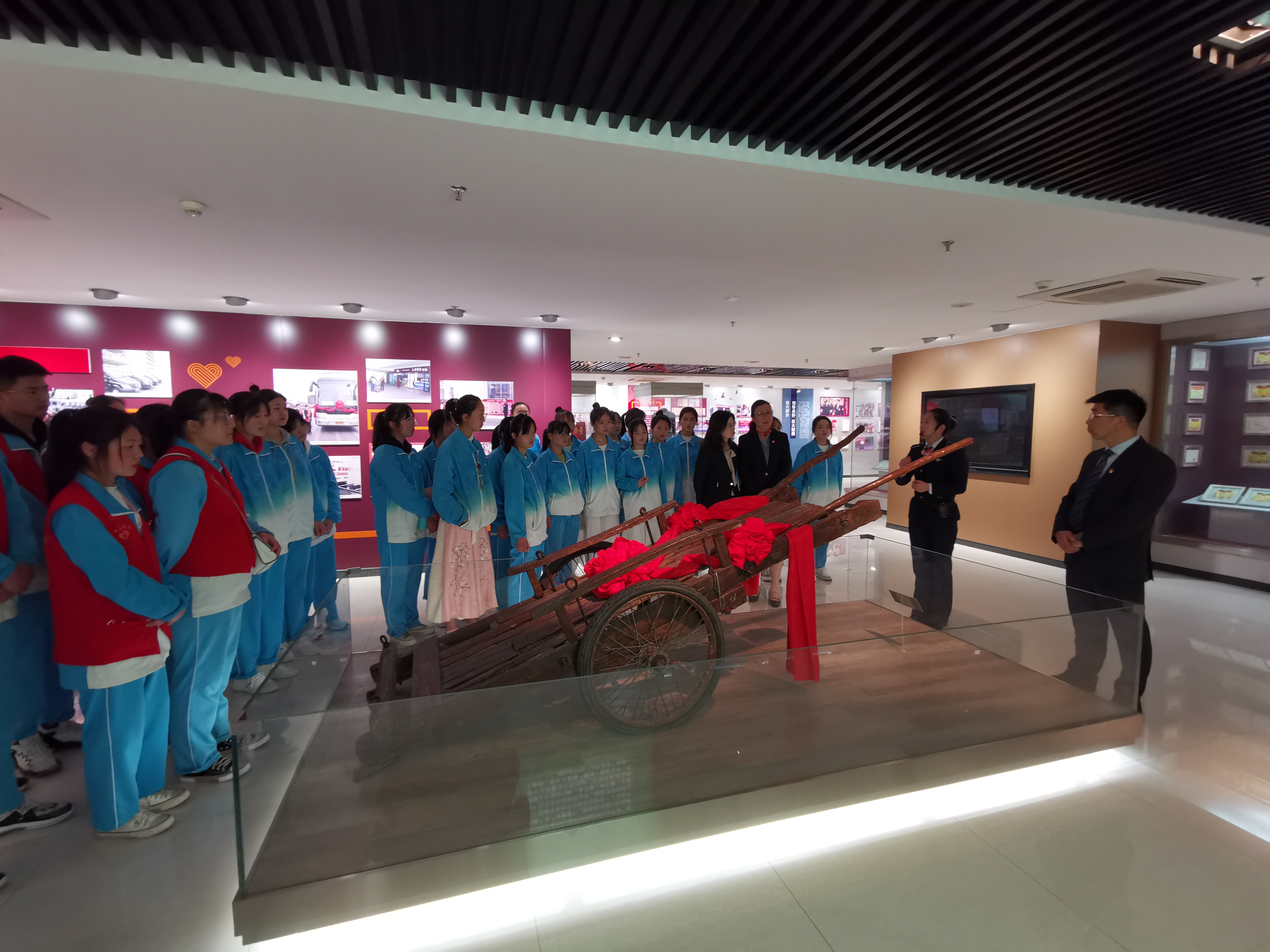 接着师生们来到雷锋车事迹陈列馆内,追随讲解员的脚步,认真聆听雷锋车事迹的介绍。讲解员分别讲述了“雷锋车的诞生”、“与时代同行的雷锋车”、“使命永恒、初心不变”、“文明传扬的旗帜”,“传承红色基因、党建引领发展”四个主题内容,一篇篇感人至深的文字和一幅幅定格历史场景的图片,记载了“雷锋车组”几十年无怨无悔的付出。雷锋精神深深打动了在场的每一个人。