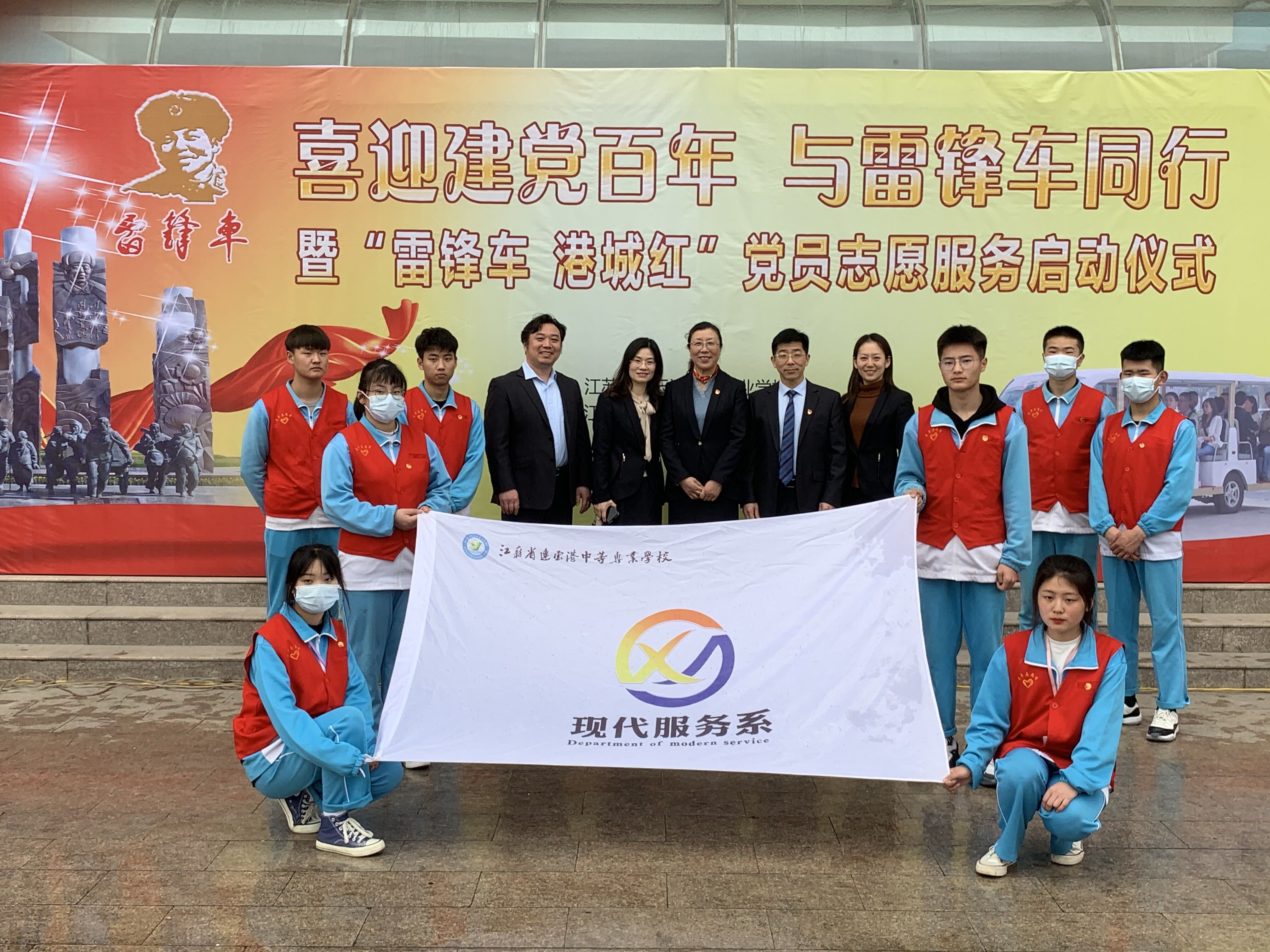 为庆祝建党一百周年,深入学习贯彻落实学雷锋精神与新时代连云港精神。3月31日,现代服务系党支部组织师生助力“雷锋车 港城红”党员志愿服务启动仪式,让雷锋精神的生命力扎根于师生心灵之中。