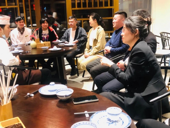 为推进专业内涵建设,深化校企合作深度,提高校企协同育人质量,切实了解顶岗实习情况,传达学校对学生的关怀,及时收集企业的意见和建议,打造优质实习平台,4月16日至4月19日,现代服务系主任徐海丽、教学副主任程宝、酒店烹饪教研室主任李春林、综合科科长梁浩、专业骨干教师苏春霞一行五人前往苏州托尼洛·兰博基尼书苑酒店、苏州皇家金煦酒店、苏州澹台湖大酒店、常州涵田度假村酒店、南京中央饭店、南京华江饭店6家酒店进行调研走访,看望顶岗实习学生,并就校企深入合作、协同育人等方面与各酒店部门总经理和人事资源部经理进行座谈活动。
