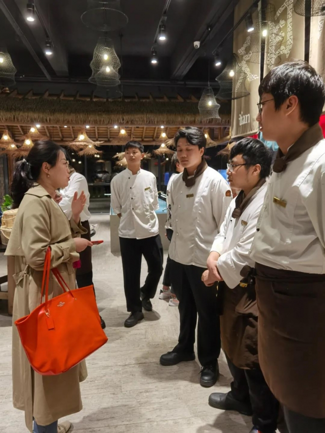 在六家酒店实习单位中,老师们参观同学们的工作环境,与实习学生进行畅谈交流,深入了解实习学生入职岗位、学生的工作表现、思想动态、住宿生活等情况,对同学们在实习过程中遇到的问题及困难进行现场的指导。通过交流,走访老师了解到顶岗实习学生通过短期岗前培训,能很快适应并出色完成岗位工作。