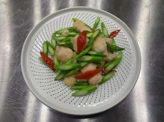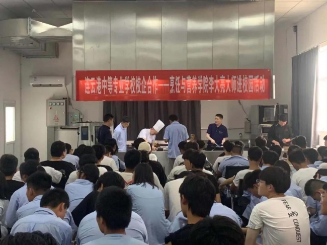 6月21日正值二十四节气的“夏至”,现代服务系烹饪与营养学院第十一次大师进校园活动在新实训基地烹饪演示间举行。特邀请连云港蔚蓝海岸行政总厨李大亮为我系19、20中餐班学生带来了三道适合夏季食用的海鲜菜肴。有句俗话叫“逢熟吃熟”说的就是什么季节吃什么菜,李大厨对于三道菜品原料的选择,就是要告诉同学们一个道理,因地取材,因时取料。