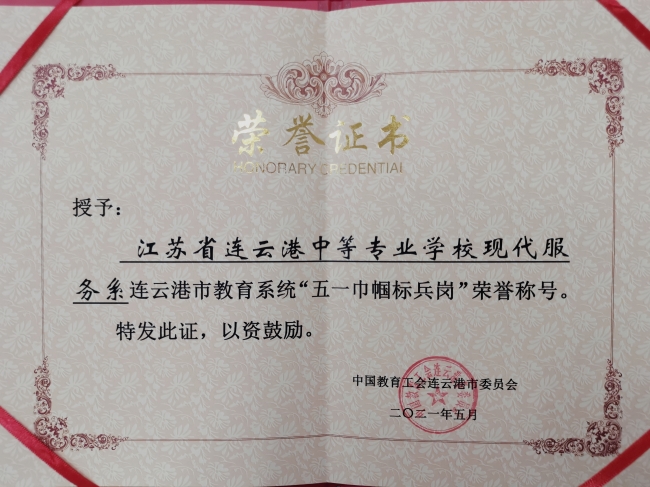 热烈祝贺现代服务系荣获“连云港市教育系统五一巾帼标兵岗”
