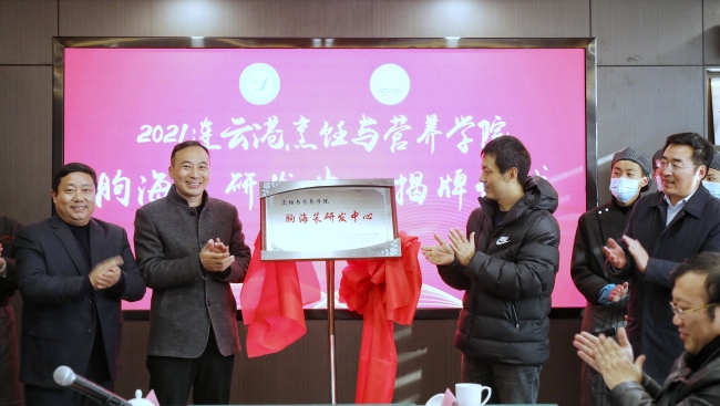 2021年1月,我校烹饪营养学院“朐海菜研发中心”揭牌仪式在学校烹饪实训基地顺利举行。“朐海菜研发中心”的成立,其宗旨是为传承连云港本帮菜(朐海菜)的经典菜品,推动连云港本帮菜系标准化、规范化建设,目前已圆满完成三期菜品的制作活动。《朐海菜制作技艺》于2021年11月被市政府授予市级非物质文化遗产代表性项目称号,该项目的顺利确立在我市饮食文化史上具有划时代的意义,同时为我校校企双方进一步开展“多层次、多形式、多领域”的合作,实现校企资源的有机结合开启了新篇章。
