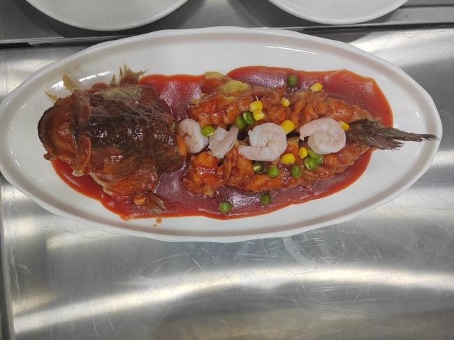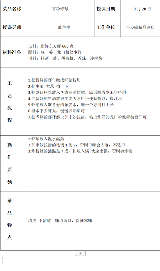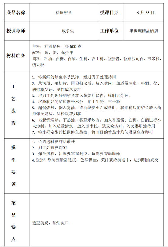 9月28日下午,我们迎来了烹饪与营养学院第十四次大师进校园活动。此次活动特邀中国烹饪大师、半步颠精品酒店行政总厨戚争生为我系21烹饪高职班和20级中餐班两个年级的同学带来了三道特色菜肴。