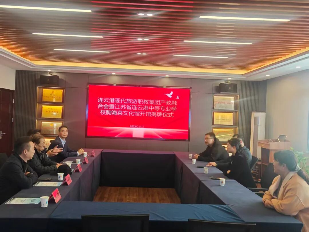 2025年11月12日上午,连云港现代旅游职教集团产教融合会暨江苏省连云港中等专业学校朐海菜文化馆开馆揭牌仪式在连云港中等专业学校顺利举行。活动由连云港中等专业学校、连云港市旅游饭店业协会及海州湾会议中心联合主办,旨在深化产教融合,推动旅游职业教育高质量发展,服务区域文旅产业升级。连云港现代旅游职教集团成员单位代表、旅游专业群教师、烹饪行业专家及学者等共同参与了此次活动。