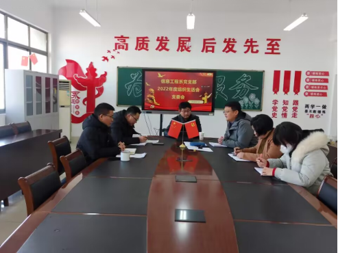 根据市委教育工委《关于开好2022年度基层党组织组织生活会和做好民主评议党员工作的通知》的精神及学校党委的指示精神,结合教育实际,信息工程系党支部团结、严肃、诚信、务实的原则,于2022年2月1日至2月15日组织召开了组织生活会并进行了民主评议党员工作。