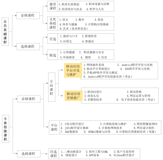 专门化方向:移动应用平台开发与维护 、移动应用营销推广
